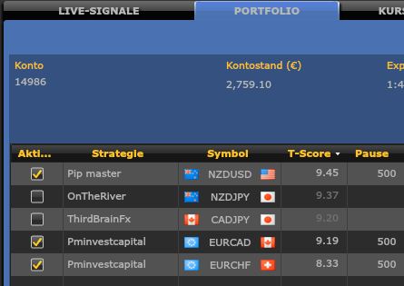 ... ich hab es endlich geschafft mir ein neues Demokonto anzulegen. 17 Strategien hab ich hinzugefügt. Das wird auf jeden Fall spannend. T-Score 7-9,98 , 2000€ Kapital, nach den ersten Stunden bin ich bei 53 Pips plus... mal sehen ob es so muter weitergeht.